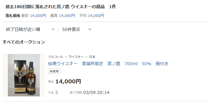 ヤフーオークションでの落札価格は、事例が過去に1件のみで14,000円となっておりました。(※2023/4/12時点より過去180日間の統計情報)