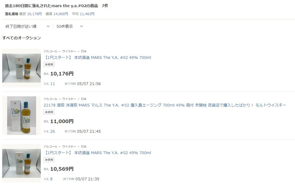 ヤフーオークションでの落札価格は、最安10,176円、最高14,000円、平均11,463円(※2023/5/8時点より過去180日間の統計情報)
