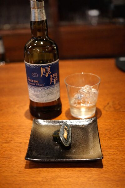 合わせる厚岸ウイスキーは、二十四節季シリーズ第8弾ブレンデッドウイスキー「大暑」水割り。