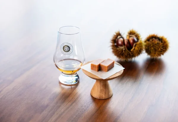期間中バーにて、栗樽で熟成中のニューボーン(熟成3年未満原酒)と、この時期だけのニューメイク(熟成前原酒)入り栗羊羹のペアリングセットをご提供いたします。