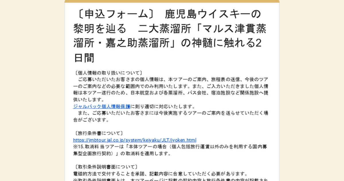 これを記念して、株式会社ジャルパックは鹿児島の自然豊かな環境で、それぞれ特徴ある二大蒸溜所を巡るプレミアムな2日間のツアーをご用意しました。ウイスキーファンはもちろん、初めて鹿児島のウイスキー文化に触れる方にもおすすめの内容です。