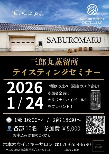 1月24日(土)六本木ウイスキーサロンにて、独自のピート道を追求する事で注目の、クラフト蒸留所「三郎丸蒸留所」にスポットを当てた特別テイスティングセミナーを開催