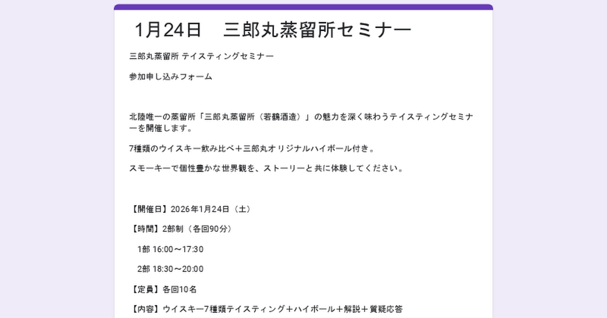 1月24日(土)六本木ウイスキーサロンにて、独自のピート道を追求する事で注目の、クラフト蒸留所「三郎丸蒸留所」にスポットを当てた特別テイスティングセミナーを開催