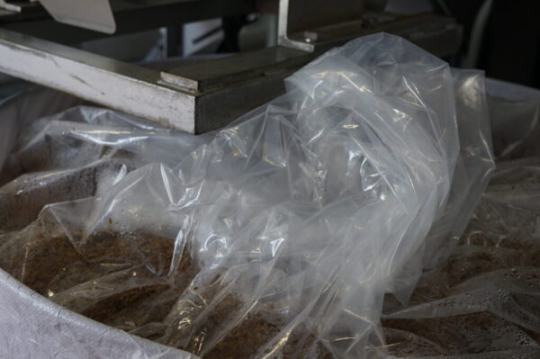 醪はアルコール度数7〜8%。ドラフは川口精機(静岡県清水市)の脱水機で処理し、近隣農家へ飼料として供給を行う。